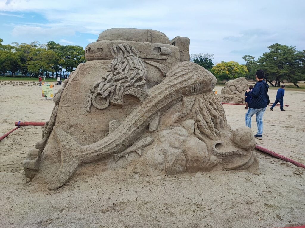 週末のメインイベントが終わっても、砂像は11月3日まで展示されています。平日なら人混みを避けてゆっくり鑑賞できるので、地元の方には特におすすめです。
