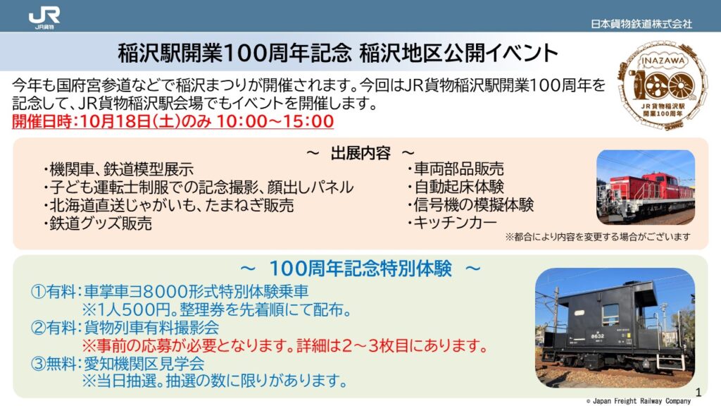 今年は特別にJR貨物稲沢駅開業100周年を記念した特別企画も実施され、例年以上に盛り上がること間違いなし。