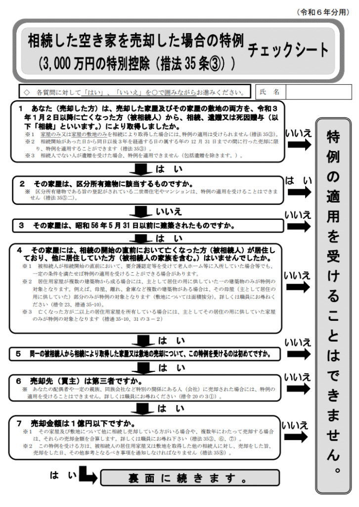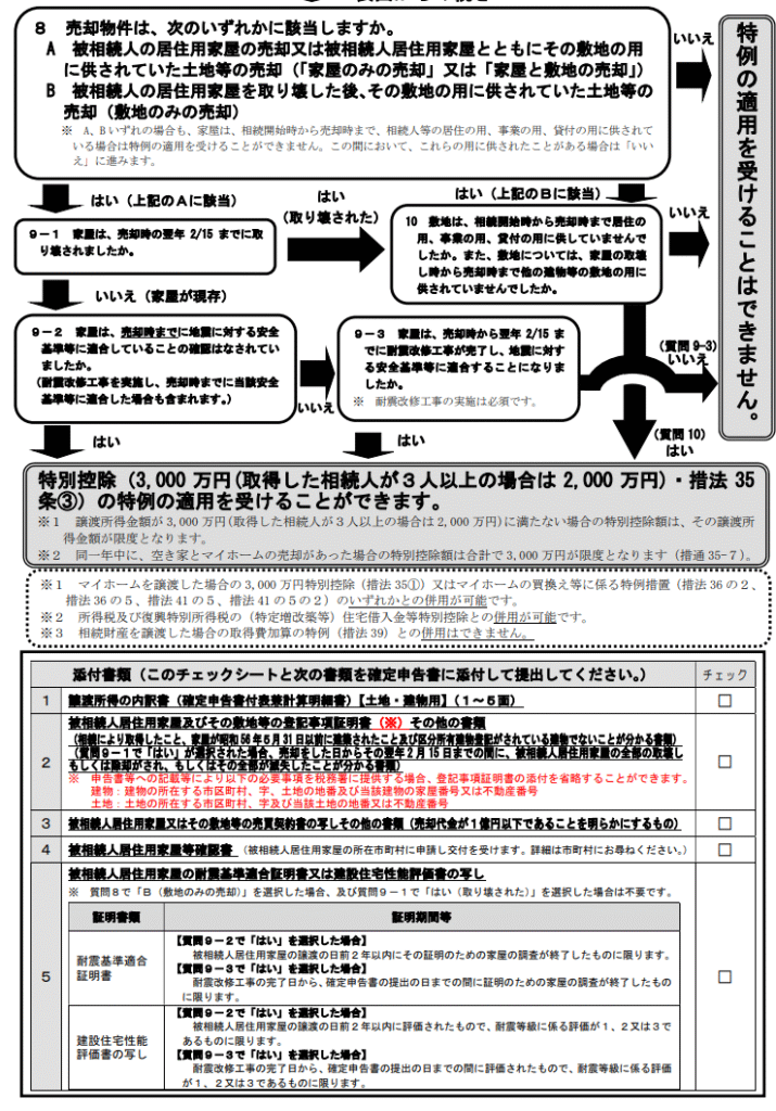 このチェックシートは「はい」「いいえ」で答えながら進むだけで、特例が使えるかどうかが分かる優れものです。