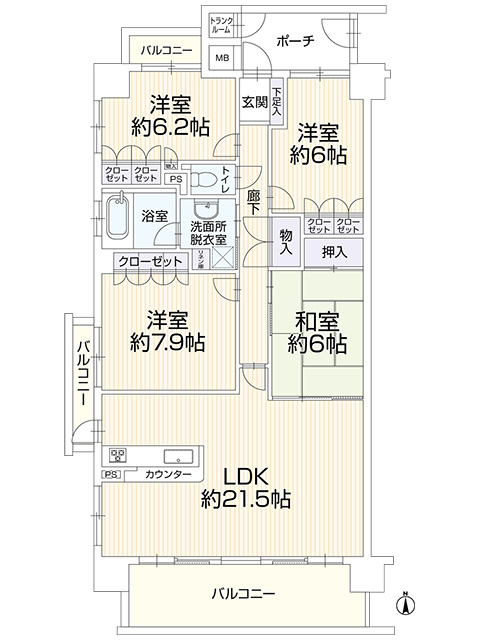 2025年9月リフォーム済でお部屋は新しく生まれ変わり、広々とした4LDKは家族みんなが快適に暮らせる間取り。